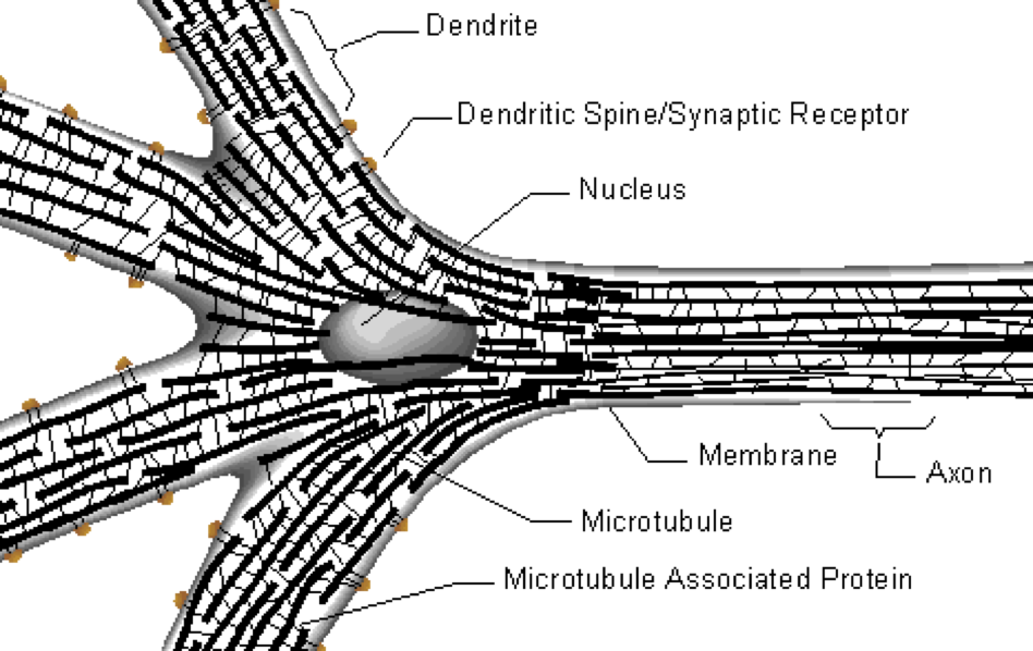 The basic of neuronal networks are neurons. Neurons consists of a cell body, dendrites and axons. Neurons ceaselessly scan their environment for chemical gradients and for other neurons to connect. If a neuron cannot connect to other neurons it dies (no worries, we produce daily around 80’000 new neurons, no matter how old we are). The scanning is nothing else as the growing of the axons. The basis of the axons growth lies within the extension of the microtubule inside the neuron.